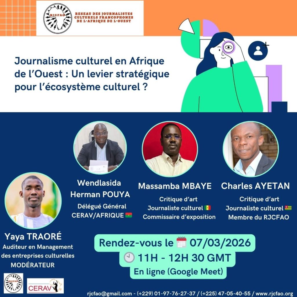 Le Réseau des Journalistes Culturels Francophones de l’Afrique de l’Ouest (RJCFAO) rouvre officiellement le chapitre 2026 de ses activités, avec une dynamique renouvelée et une vision affirmée : repositionner le journalisme culturel comme un levier stratégique de visibilité, de professionnalisation et de structuration des industries culturelles francophones.